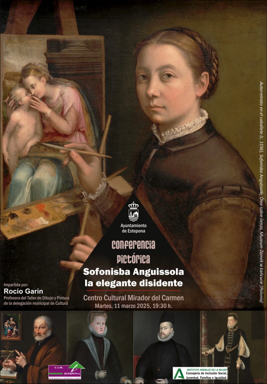 El próximo martes 11 de marzo, a las 19.30 horas, se impartirá en la Biblioteca de Culturas Contemporáneas del Mirador del Carmen la conferencia ‘Sofonisba Anguissola, la elegante disidente’, a cargo de la profesora del Taller de Dibujo y Pintura de la delegación municipal de Cultura, Rocío Garín.