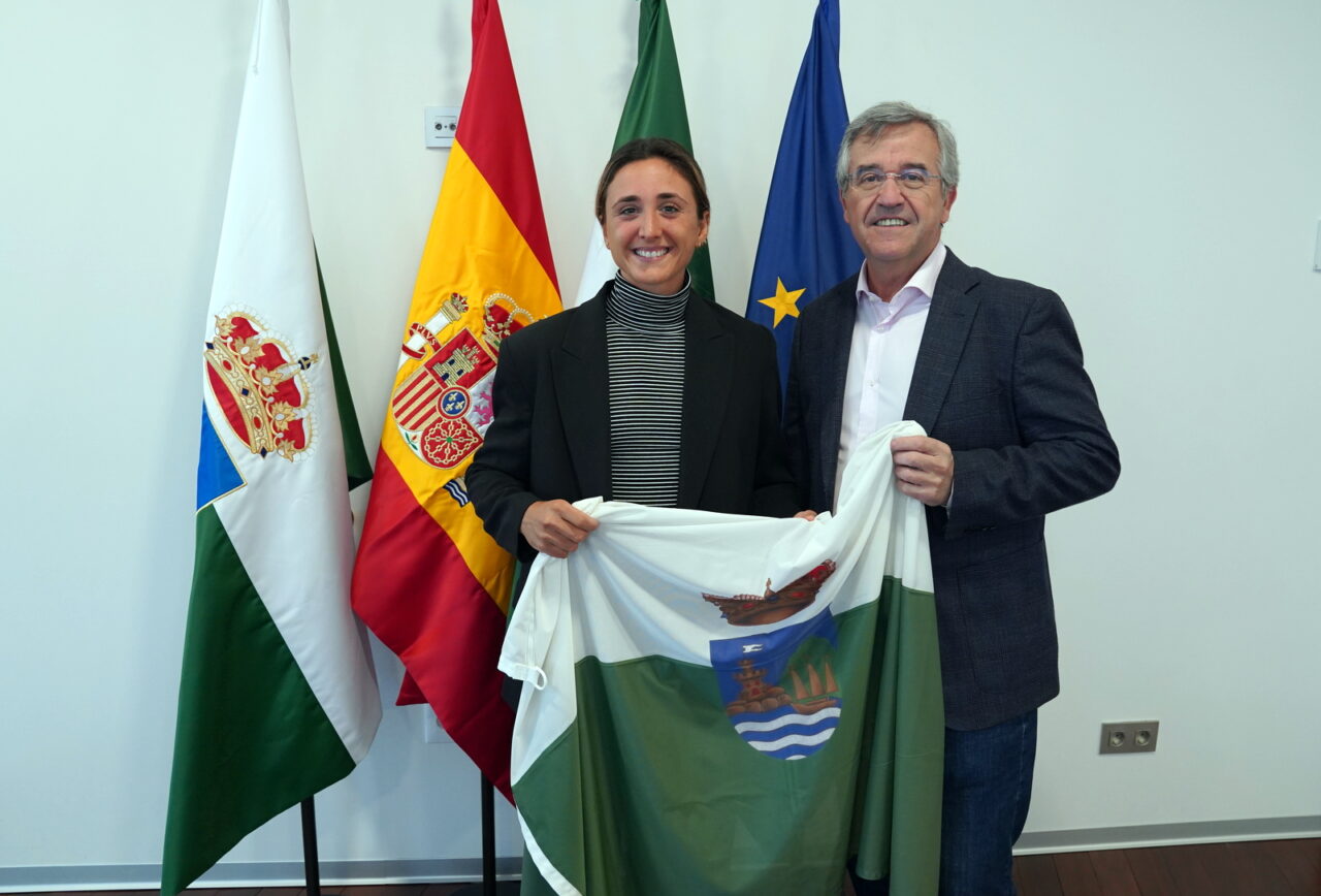 El primer edil le ha hecho entrega de la bandera de Estepona para que la acompañe en sus futuros retos deportivos y ha señalado que Ana Moncada es un referente para las personas de su generación por representar valores como la superación, el esfuerzo y la determinación.