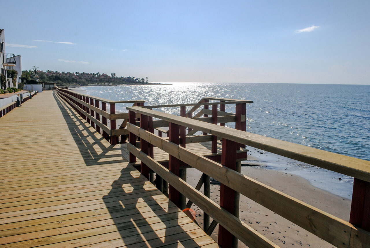 El corredor litoral de Estepona está ejecutado en más de un 90%. El Ayuntamiento instaló hace unos meses el último de los 17 puentes de madera de gran porte previstos en el proyecto. En concreto, se colocó en el tramo correspondiente a la zona de El Saladillo. También se sigue trabajando en los tramos de Benamara y El Saladillo.
