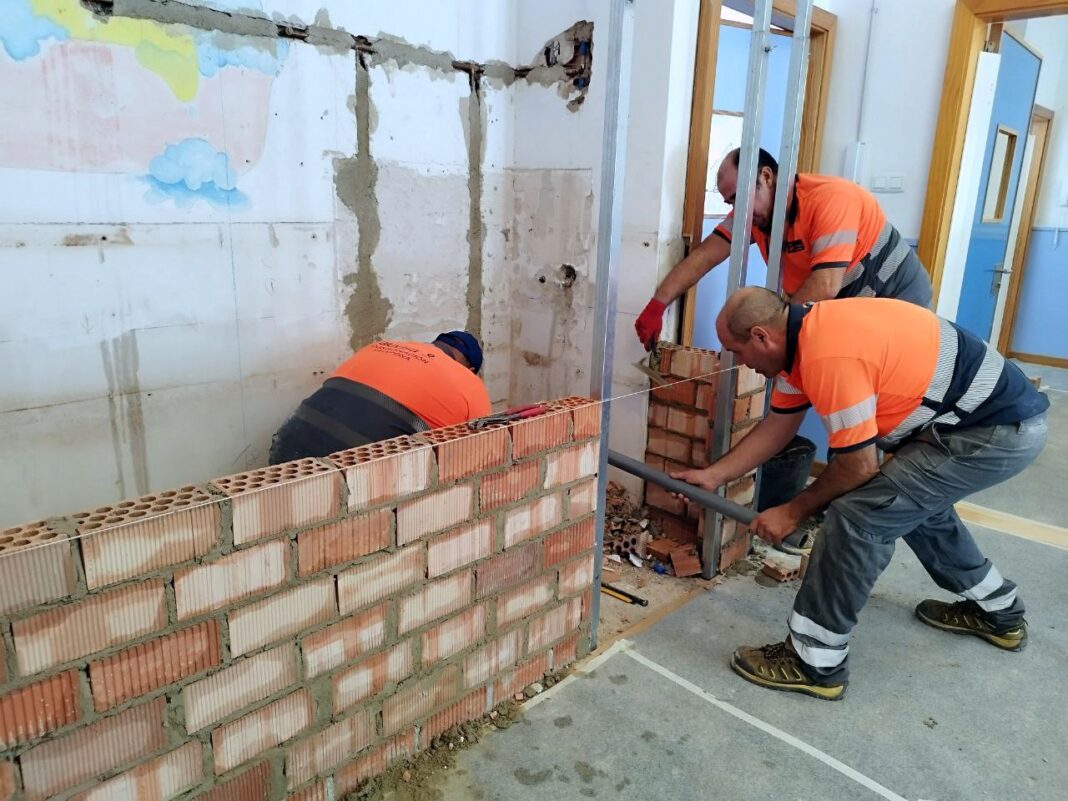 Entre las principales actuaciones que están acometiendo las brigadas operativas municipales, destaca la construcción de dos pequeños baños en una nueva clase y en el aula de transición de la Escuela Infantil El Mar.