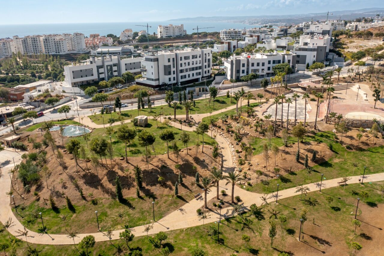 Este nuevo ‘pulmón verde’ tiene una superficie de 16.500 metros cuadrados, que en su mayoría son zonas verdes y ajardinadas, lo que refuerza el proyecto ‘Estepona, Jardín de la Costa del Sol’. Además, cuenta con plazas, gradas, parques infantiles y un lago artificial.