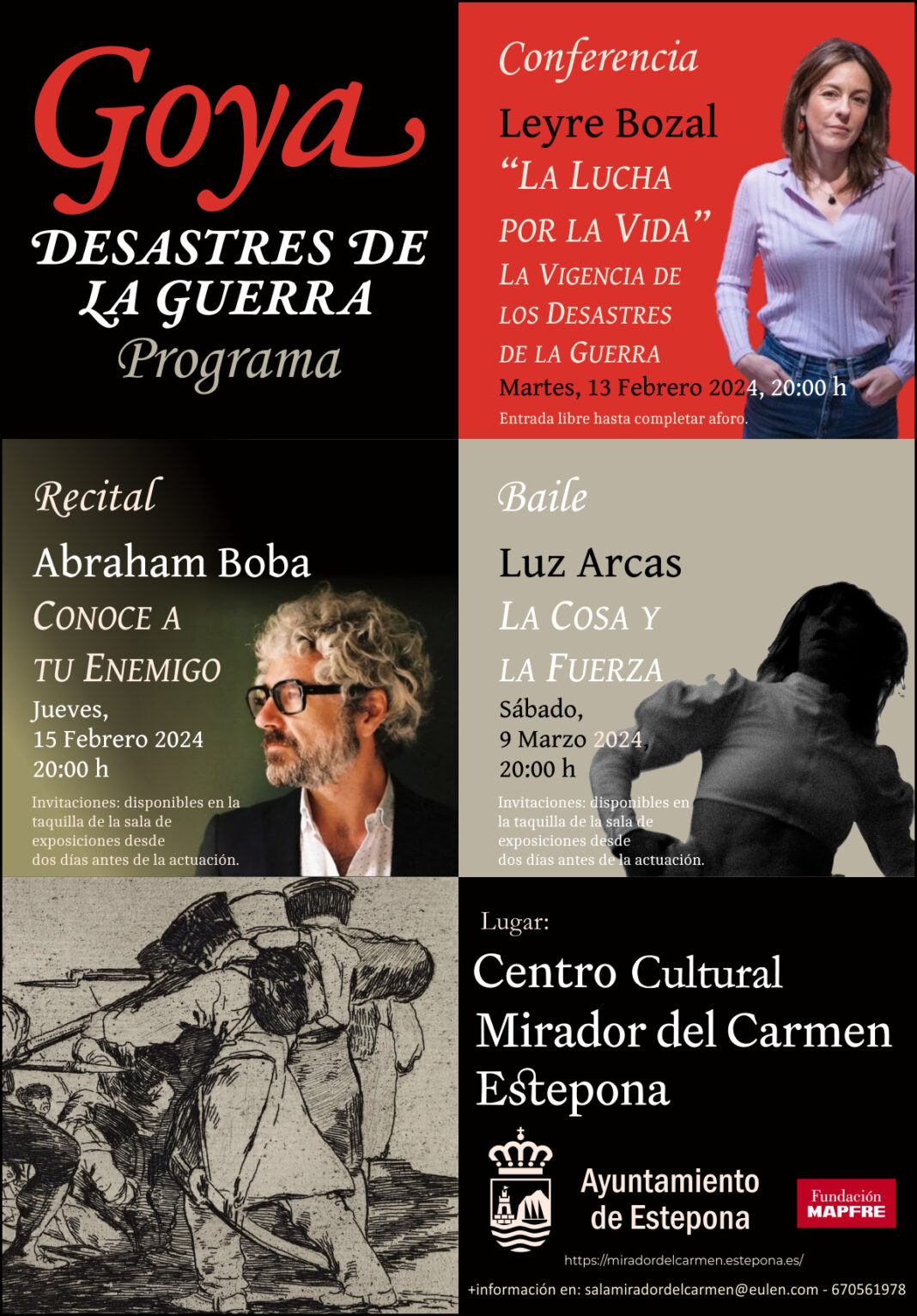El Ayuntamiento de Estepona y la Fundación MAPFRE han programado un ciclo de actividades culturales con motivo de la exposición ‘Goya. Desastres de la Guerra. Colecciones Fundación MAPFRE’, que podrá visitarse hasta el 31 de marzo en el Mirador del Carmen.