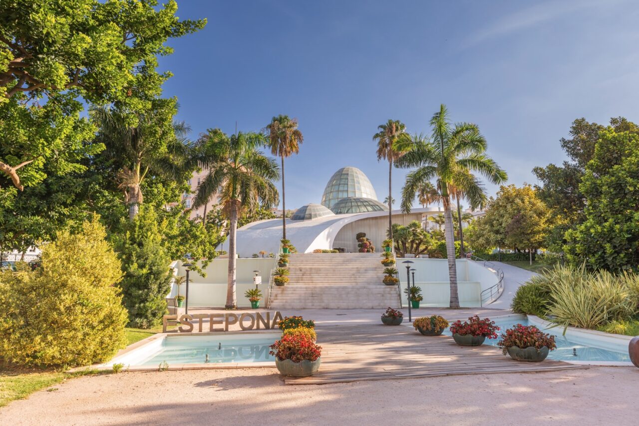 El Parque Botánico-Oquidario de Estepona está en constante transformación, cuenta con más de 3.000 especies de plantas, de las que más de 1.500 son orquídeas. Se inauguró en 2015, está dividido en dos niveles que se encuentran en cotas diferentes, con una superficie de 1.000 metros cuadrados y 15.000 metros cúbicos de volumen. El edificio posee tres cúpulas recubiertas de vidrio que se han convertido en su seña de identidad y que han cambiado por completo la fisonomía del municipio. La bóveda principal del inmueble alberga decenas de especies de orquídeas y una gran cascada que sorprende a los visitantes que observan la cúpula desde su interior.