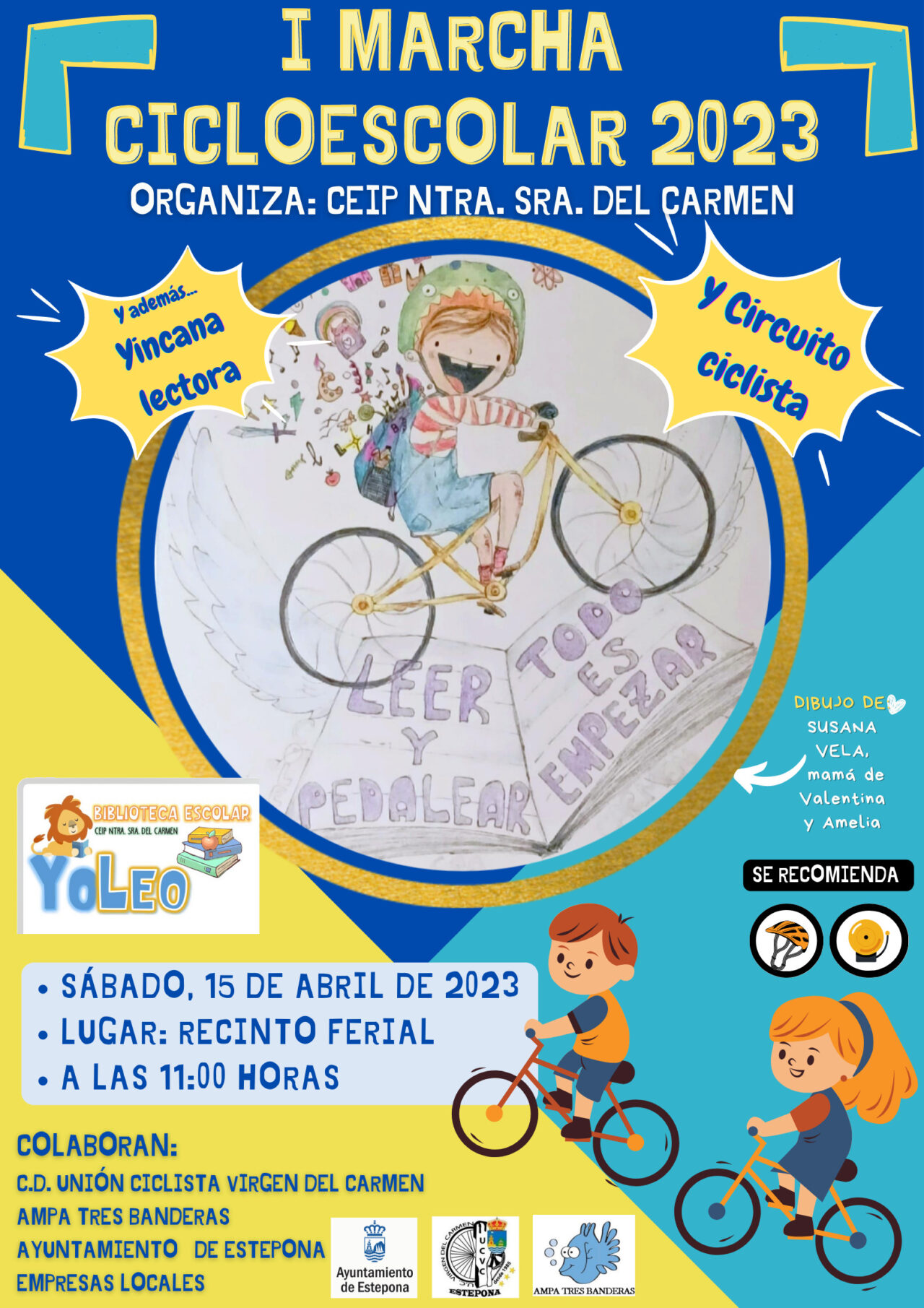 Estepona acogerá la I Marcha Cicloescolar’ bajo el lema ‘Leer y pedalear todo es empezar’, organizada por el colegio Nuestra Señora de Carmen en colaboración con el Ayuntamiento, la Unión Ciclista Virgen del Carmen y el AMPA Tres Banderas. Esta actividad, que se celebra con motivo del ‘Día Internacional del Libro’, se suma al programa confeccionado por el Consistorio para celebrar el ‘Año de la Biciccleta’.
