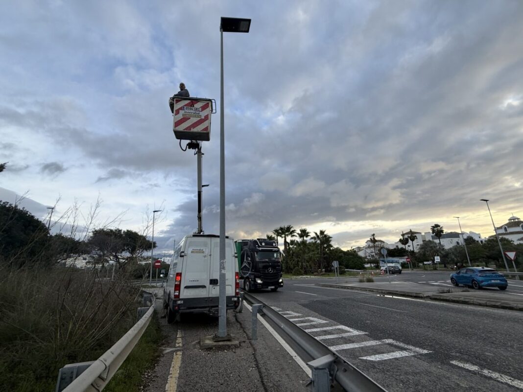 Las Brigadas Operativas del Ayuntamiento de Estepona llevan a cabo trabajos de mejora en la seguridad de la rotonda de ‘Las Hormigas’, en Arroyo Vaquero, centrados en la optimización de la visibilidad y la señalización dentro del ámbito de competencia municipal en la A-7.