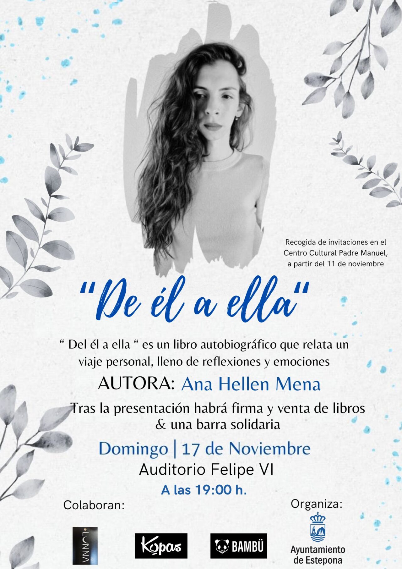 La concejala adscrita a la delegación de Cultura y Fiestas, Macarena Diánez, ha informado hoy que el próximo domingo, 17 de noviembre, tendrá lugar la presentación del libro ‘De él a ella’ en el Auditorio Felipe VI, a las 19.00 horas.