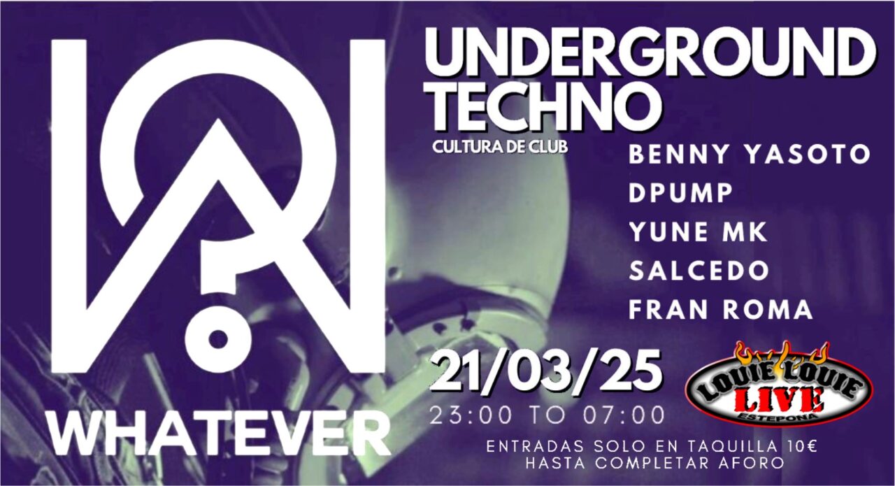 La programación también incluye una noche de música electrónica el viernes 21 con «Underground Techno. Cultura de Club. Whatever Sound», un evento que se extenderá desde las 23:00h hasta las 07:00h de la mañana siguiente.