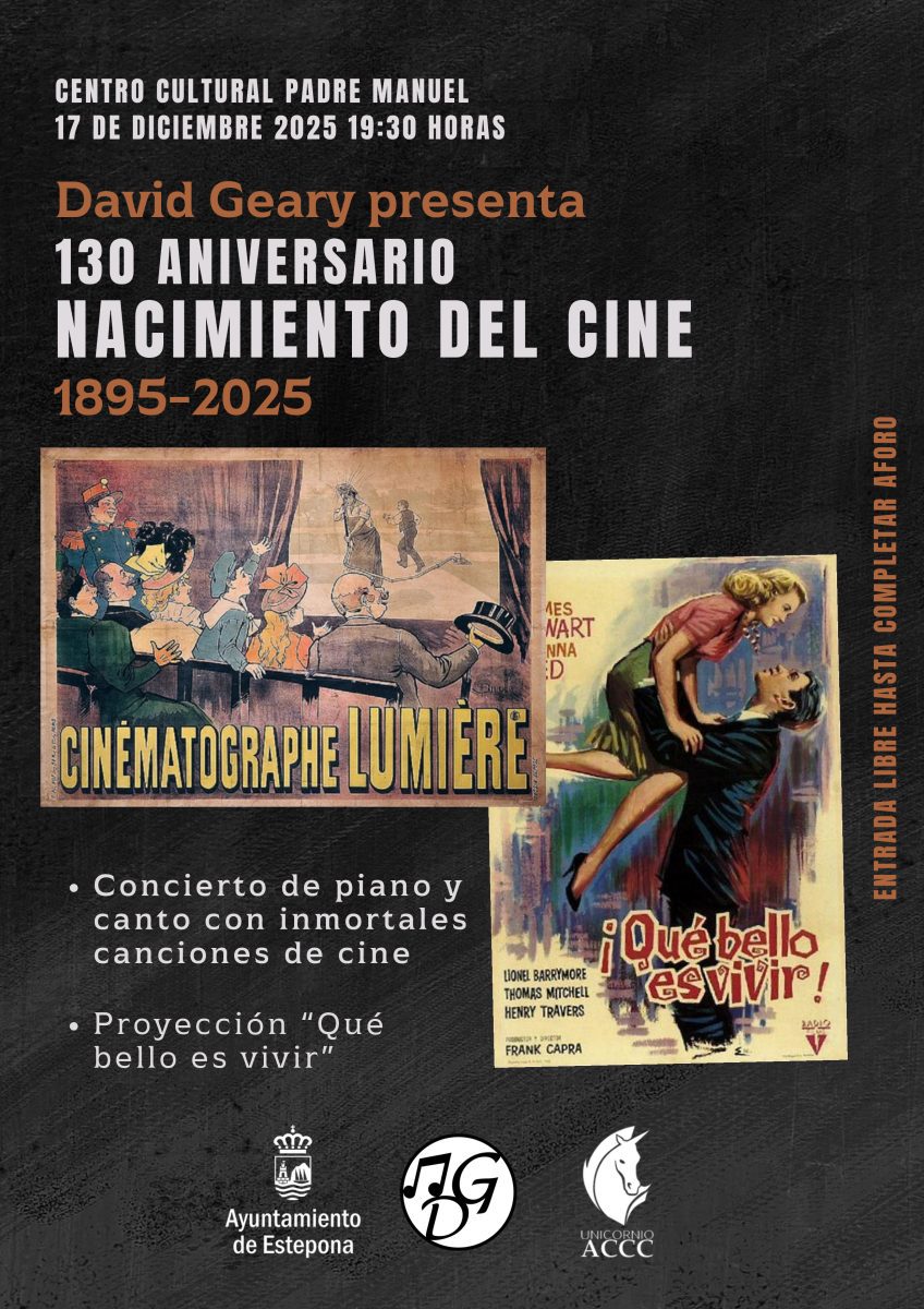 El Centro Cultural Padre Manuel de Estepona acogerá el miércoles 17 de diciembre a las 19:30 horas un concierto cinematográfico seguido de la proyección de ‘¡Qué bello es vivir!’ para celebrar el 130º aniversario del nacimiento del cine. La entrada será libre hasta completar aforo.