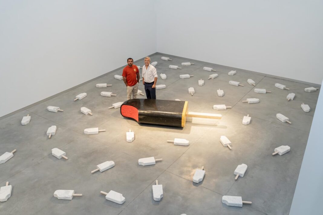 Las piezas incluyen helados clásicos como Pirulo y Fantasmiko, juguetes de playa, aletas de buceo, tablas de surf y patinetes. El proceso de creación emplea técnicas desde el corte con sierras diamantadas hasta incrustaciones renacentistas, conectando con la tradición de cantería manual.